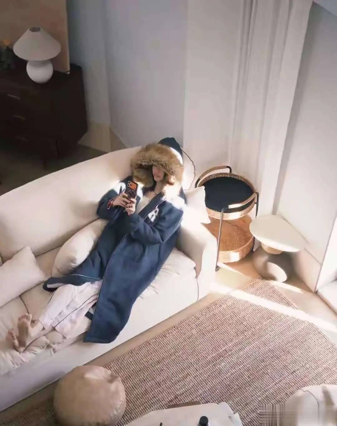 以前,我们看她在T台上,穿着露肩礼服,气场十足,宛如冷艳女王。而如今,刚经历了生产的她,气血不足,怕冷,家里穿着薄薄的睡衣外加一件厚重的棉袄,整个身体裹得严严实实,但又透出几分可爱和俏皮,完全没有丝毫的超模架子。这份真实的生活气息,真的是让人一见倾心,充满亲和力。